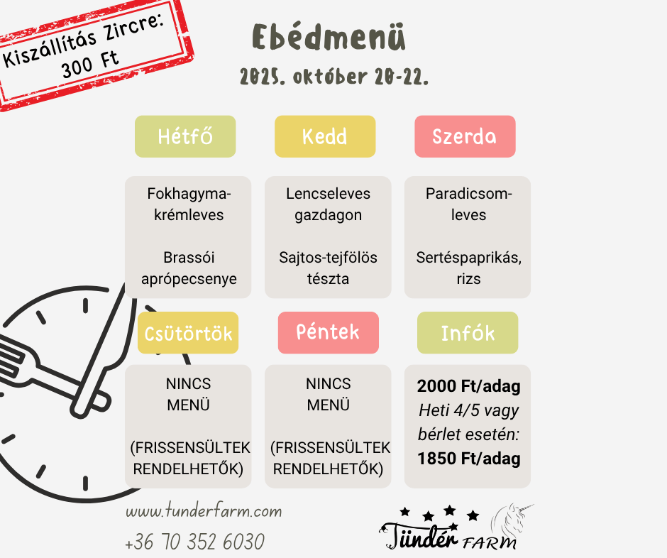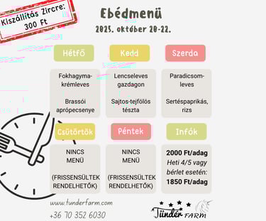 Ebédmenüs napon reggel 9 óráig megrendelve.