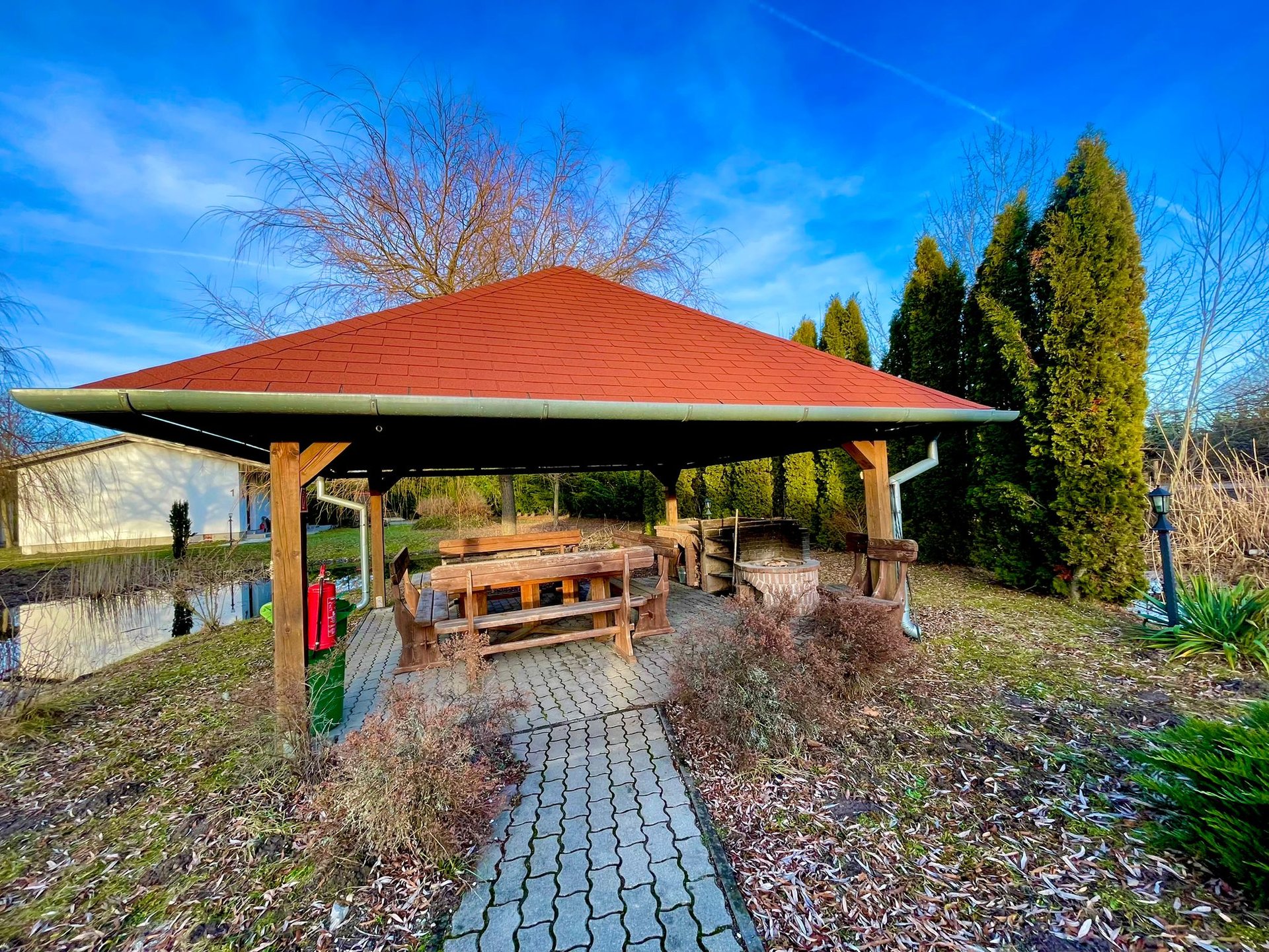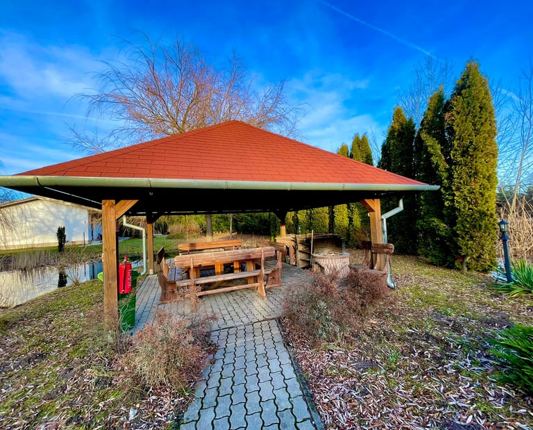 Ideális esküvőhelyszín azoknak, akik szeretik a zöld környezetet, egy olyan hely, ahol a romantika és a természet összeolvad. A gyönyörű pázsitos terület, a kerti tó, a fák és a virágok színpompája mind hozzájárulnak ahhoz, hogy a nagy nap tökéletesen teljesedjen ki. A friss levegő és a nyugodt környezet pedig a vendégeket is elvarázsolja. Az esküvői ceremóniára és a fogadásra is számos lehetőség áll rendelkezésre ezen a varázslatos helyen.